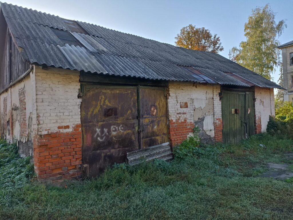 Пропонується до продажу нежитлова будівля (гаражі) загальною площею 79,4 кв.м, по вул. Благовіщенська, 55а в м. Тростянець, що складається з двох приміщень площею 47,2 та 32,2 кв.м. Стіни будівлі – шлакобетон з цегляними стовпами, покрівля – асбестоцементні листи хвилястої форми (шифер).